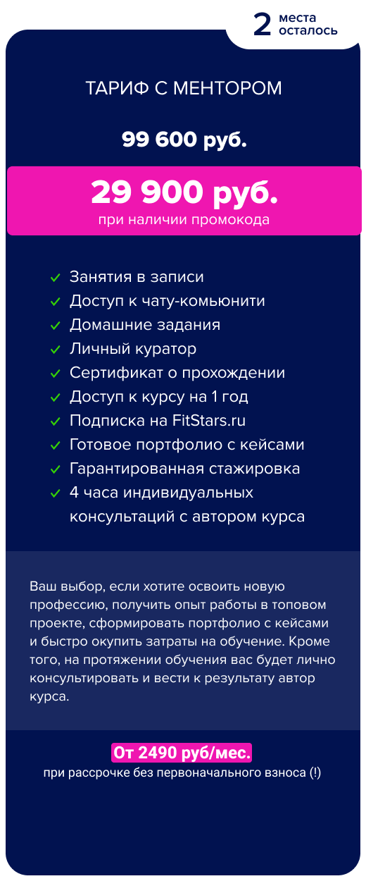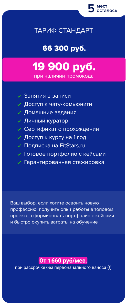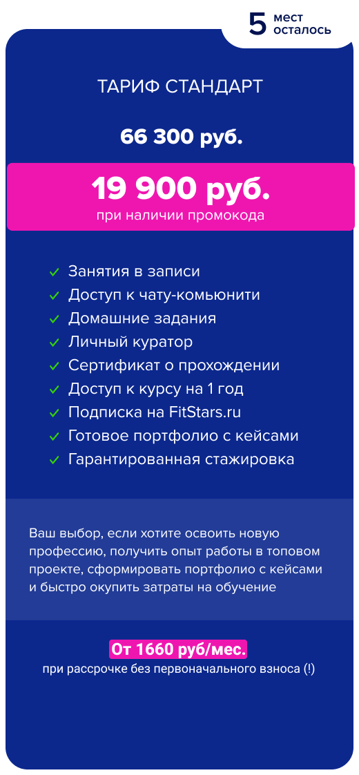 Студенты, выполнившие все задания и тесты, гарантированно попадают на стажировку в FitStars.ru.
